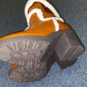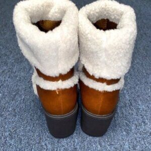 JustFab Ellie Trim Heeled Sherpa Lined Women's Boot Size 6 Tan/Brown
