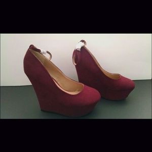 Brand new with box! Burgundy round-toe closed wedge. 5" heel.