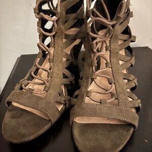 JustFab Green Gladiator Sandals with Striking Crisscross Design