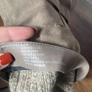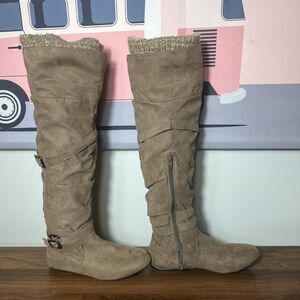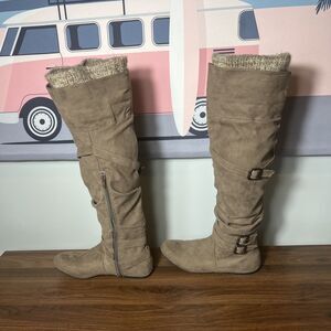JustFab Grey Knee-High Riding Boots Flat Heel Knit Top Size 8 Stylish Comfort