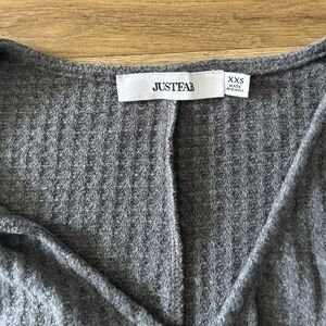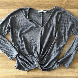 JustFab Grey Knotted Front Lightweight Sweater (Fits Up to Small)- EUC