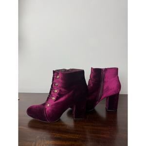 JustFab Chunky High Heel Ankle Boots, Magenta, Velvet Size US 8.5