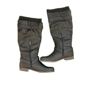 JustFab Kadijah Flat Boots Black Sweater Cuff Size 10 Women's