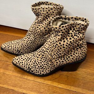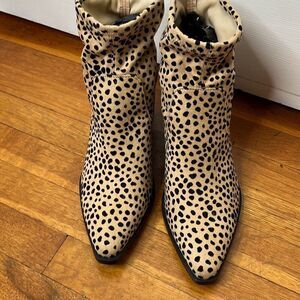 JustFab Leda Cheetah Leopard Spotted Block Heel Pointed Toe Western Boots Size 8.5 US