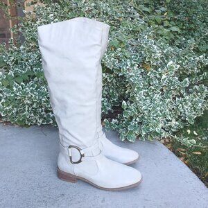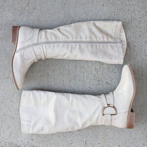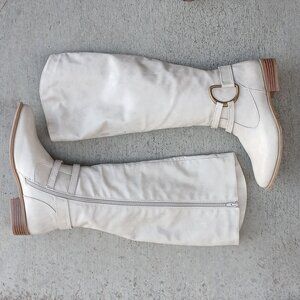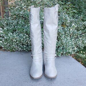JustFab Light Grey Knee Length Full Zip Western Style Low Heel Boots Like New
