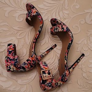 Spring has officially sprung with this elegant beauty! Fully wrapped in floral, this heeled sandal with ankle strap is flirty, fresh and feminine - the ultimate new season staple! Stiletto heel.