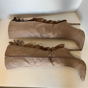 Just fab Norelle Heel boots over the knee beige size 6, used condition, some small stain see photos, inside worn see photo,