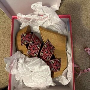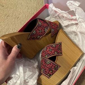 JustFab Open Toe Bev 5 in Wedge Platform Size 7.5 EUC