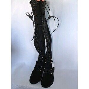 JustFab Phyllida Flat Black Over the Knee Lace Up Boots Women's Size 7 NEW NIB