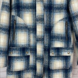 JustFab. Plaid hooded Faux Wool Coat/jacket. Blue. Medium.