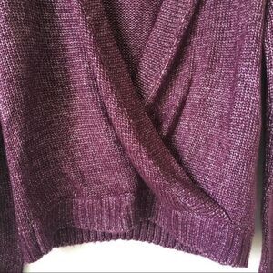 JustFab Purple Open Front Metallic Knit Wrap Crossover Sweater NWT