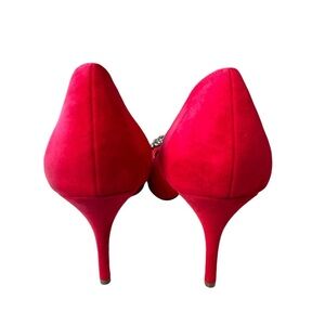 JustFab | Red Embellished Silver Bow Heels Size 11 NWOT