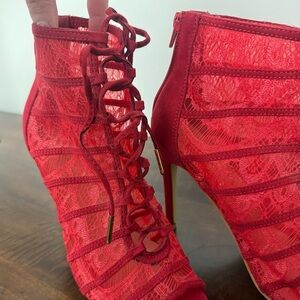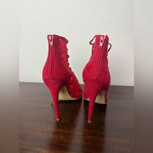 JustFab Red Lace Up Stiletto Heels, US Size 8.5