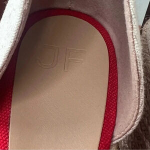 JustFab Red Wedge Ballet Heels with Bow Ties Metallic Gold Accent Woven sz 8