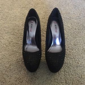 Beautiful rhinestone covered black pumps by JustFab