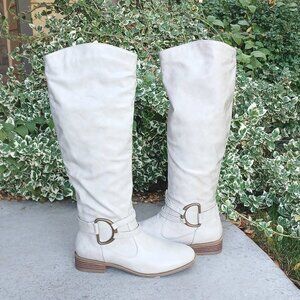 JustFab Stone Light Grey Knee Length Zip Western Style Low Heel Boots Like New