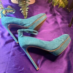 πJustFab Turquoise Pointed Toe Suede 5.5 " High Heel Pumps with Ankle Straps