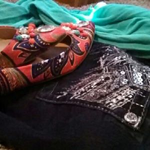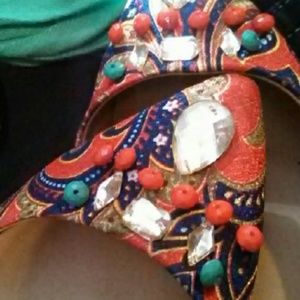 These have some very beautiful bead work on the front, point toed and super comfortable! Easy to match with the different colors on the Mexican style design!
