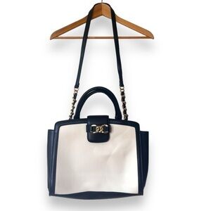 JustFab White/Black Paneled Satchel w/ Gold chain trim NWOT