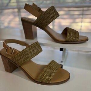 JustFab Women Ishla Blocked Heeled Sandals size 11 gently used color natural