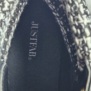 JustFab Women’s Rayln Lace-Up Black Chunky Boot 90’s Fashion Shoes Plaid Detail