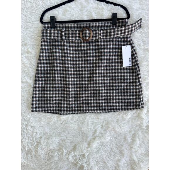 JustFab Wool Blend Plaid Belted A-Line Skirt XL