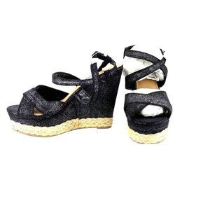 JustFab metallic black canvas cross strap platform wedges braided buckle. Sz 9