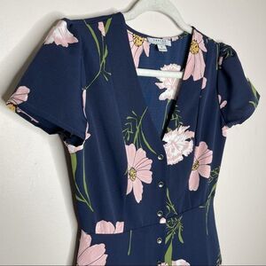 JustFab pink floral navy fit and flare dress