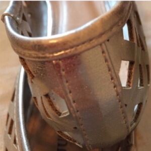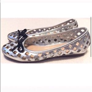 JustFab silver cut out round toe ballet fl…