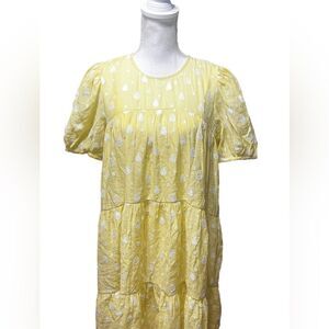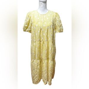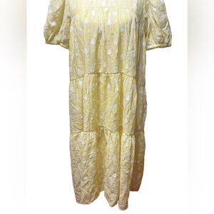 JUST female is a Copenhagen-based contemporary, ready-to-wear brand with an environmentally and socially friendly approach to fashion. At JUST female you will find high quality ready-to-wear fashion with essential styles that can be dressed up or down for life’s many festivities, likely to become wardrobe stables for many seasons to come. A great addition to your new season wardrobe, this dress is crafted in a flattering yellow shade and features a double layer design, with a sheer layer over a slip dress. This dress has a white teardrop pattern over it, with puff sleeves, and a multi-tiered design skirt. Style this dress with a pair of white heels for your next occasion, or style down with a pair of Veja trainers.