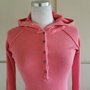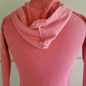 Waffle Knit Long Tunic/Dress With Hood. Snap Front, Rounded Hem with Pearl Trim, Terry Cloth Cuffs. NWOT... Worn Once.
