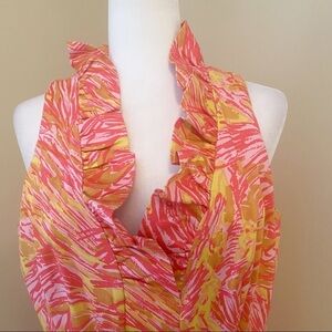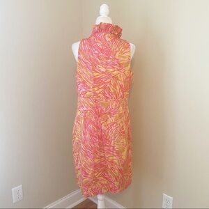 Ruffle stand up collar bright color sleeveless dress summer events showers church wedding