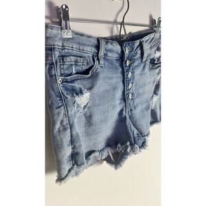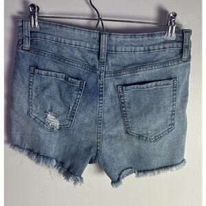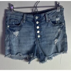 JustUSA Womens High Rise Button Fly Distressed Stretch Denim Jean Shorts Sz 27