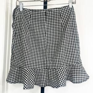 Justalwart Ruffled Mini Skirt - Black White Gingham Plaid Check, Size M