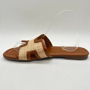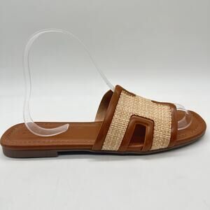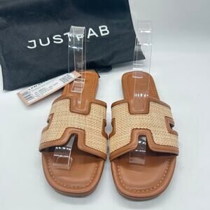 Justfab Becca Flat Sandals Womens 8 Brown Woven Upper Comfortable Slip-On NEW