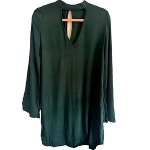 Justfab Choker Shift Dress, green long sleeve mini short dress