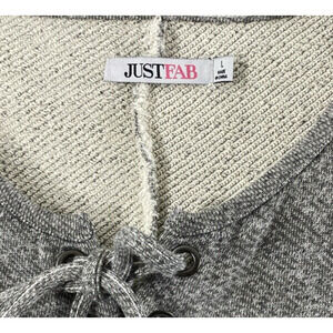 Justfab Dress Womens Large Gray Lace Up Long Sleeve Pockets Aline Jersey Knit