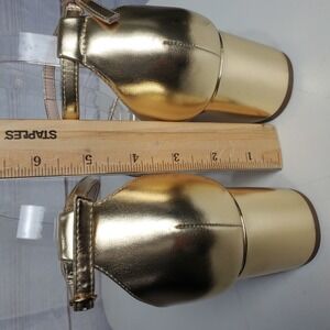 Justfab Noura Gold Tone Strappy Open Toe Block Shiny Heels Size 9.5