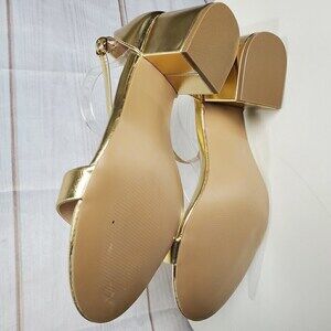 Just Fab Noura E Gold Tone Strappy Open Toe Block Heels Size 9.5