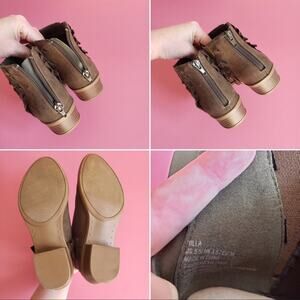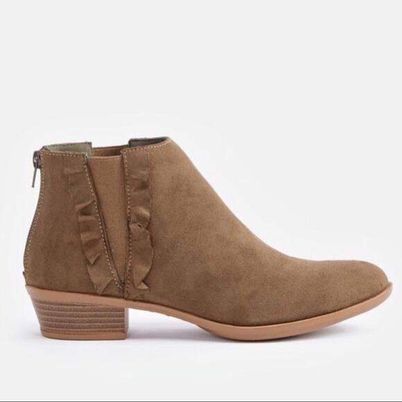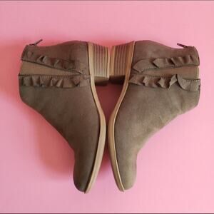 Justfab Ruffle Faux Suede Milla Bootie in Olive. Ankle zip. Size 5.5.