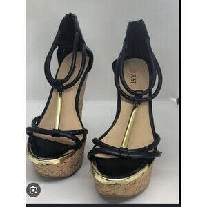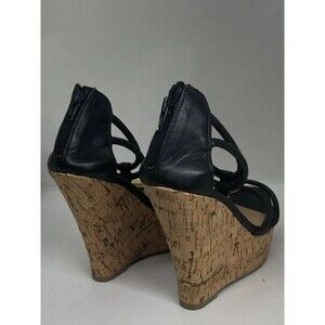 Justfab Stacie Womens Black Tubular Straps Cork Wrap Glamorous Wedge Heel US 7.5