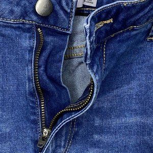 Justfab Women’s Bermuda Style Denim Jean Shorts 34 Blue Distressed Cuffed Legs.