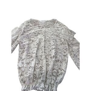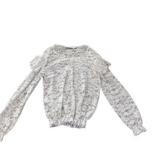 Justfab Women's White Lace Long Sleeve Blouse Size M Casual Floral Top