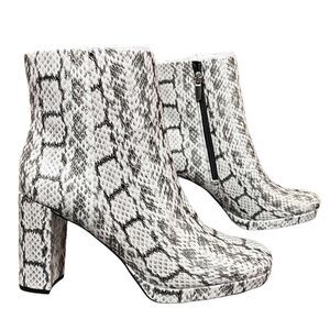 Justfab bootie Women’s Animal Print Francine Platform Ankle Boot Faux Leather Snakeskin Black White Fun Statement Classic Neutral