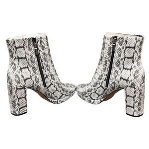 Justfab bootie Women’s Animal Print Francine Platform Ankle Boot Faux Leather Snakeskin Black White Fun Statement Classic Neutral
