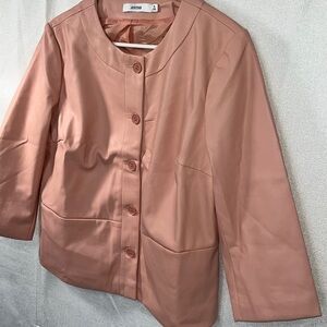 Justfab faux leather light weight pastel pink Button up w/pockets. NWOT. Size XL