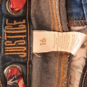 Justice size 16 blue jean denim shorts with removable pink belt. Very good pre-owned condition. Smoke free pet friendly home. Please see pictures for measurements. Removable pink belt blue jean denim shorts 16 Justice