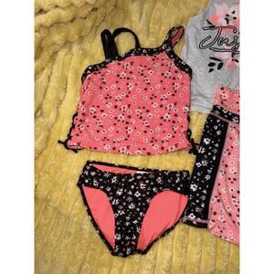 Justice 4 Piece Girls, Outfit, Swimsuit, Tankini Shorts Tank Floral Orange 10