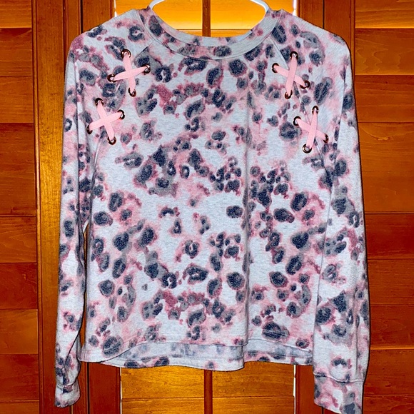 Justice active leopard crisscross crop top sweater Never worn size 14/16