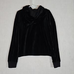 Justice Active Black Gymnast Pullover Crop Velour Hoodie Sweatshirt